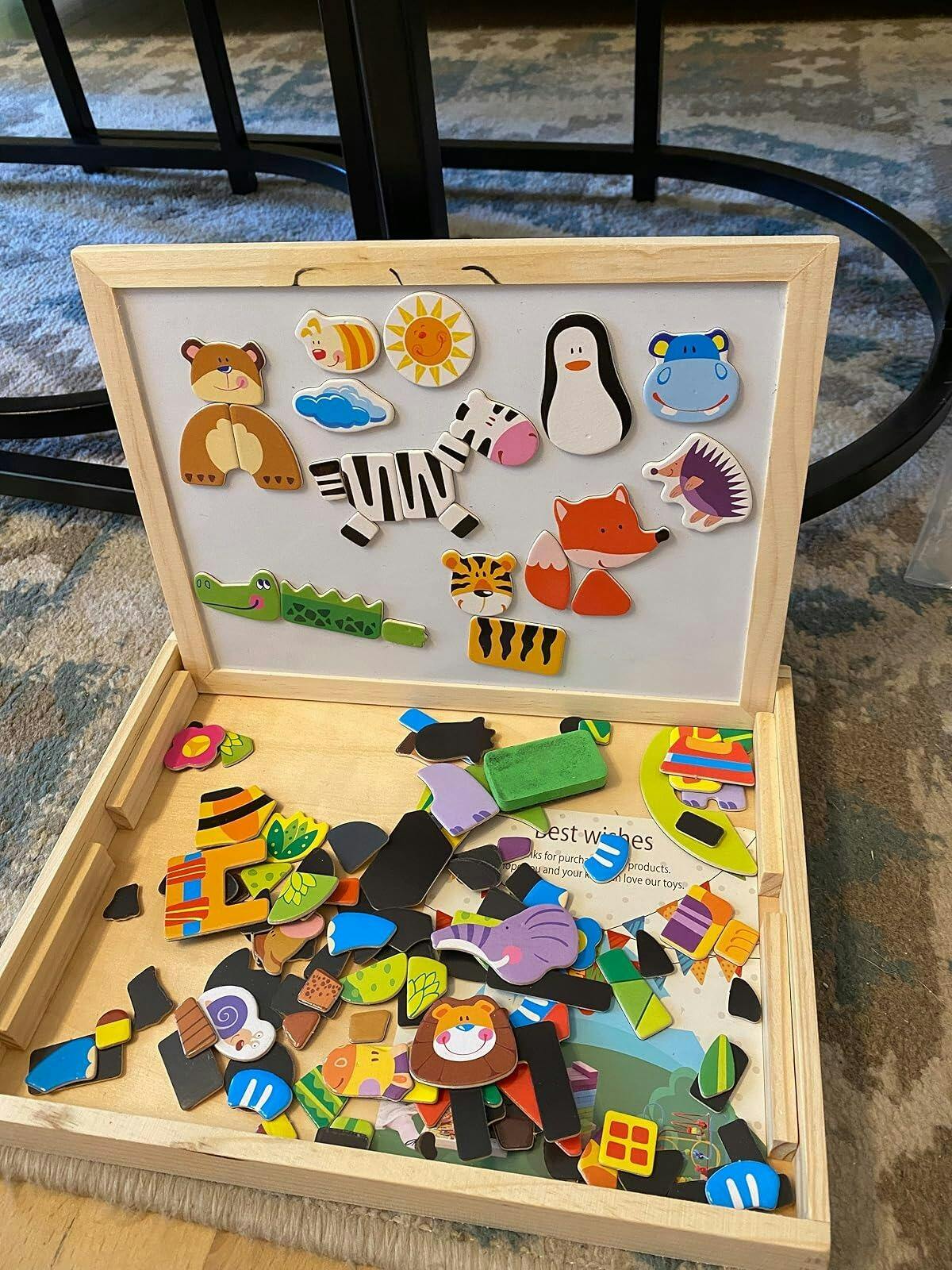 Limitless options, such as drawing and combing magnetic elements on a whiteboard or writing with chalk on a blackboard, will keep your kid entertained for hours at a time. Every masterpiece requires time, so give it to them. Once they are done, clear everything and start again!